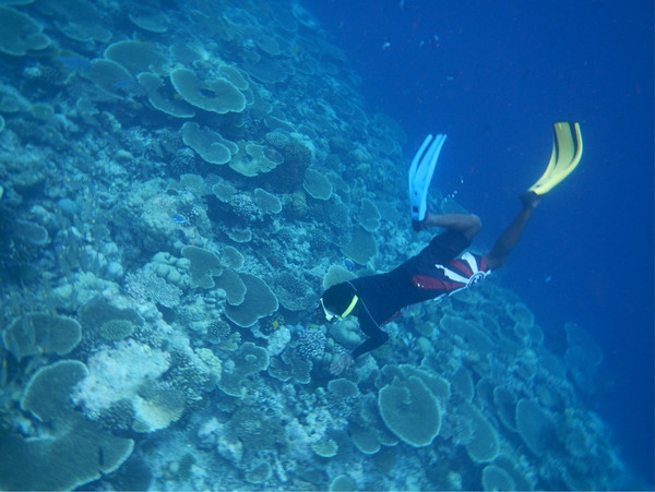 回屋扛上浮潜设备直奔Sport Center,开始我们的鲸鲨探寻之旅。大概因为阴天的缘故,海上风浪很大,船晃得厉害,开了2个多小时依然无果,终于停下来浮潜了一会,就匆匆往回赶了