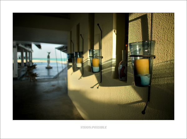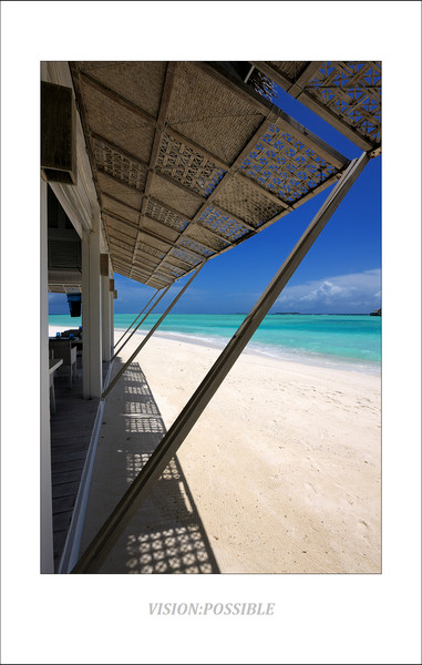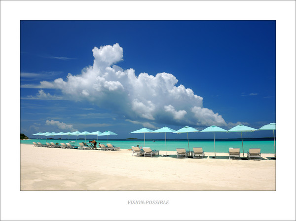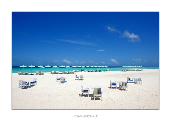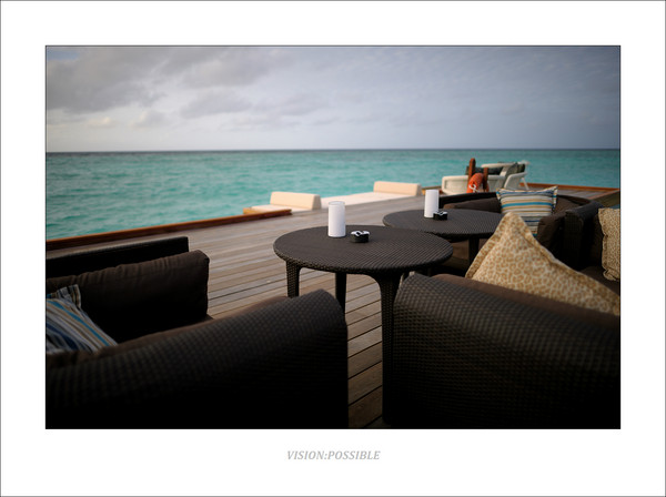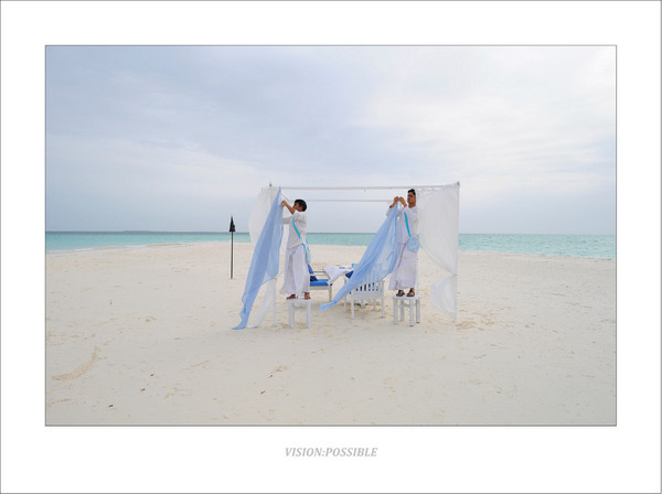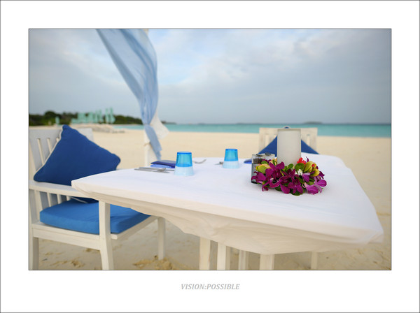 这是blu餐厅外的沙滩,可以看到天气也开始变好了。工作人员为一对客人做露天晚餐的布置工作,这样浪漫的晚餐是可以预订的,大约125美金/人。后面那个黑色的柱状物体是烧油的油灯,供晚餐照明用。