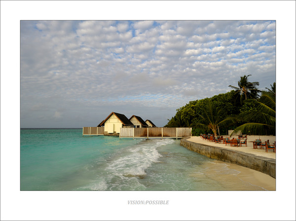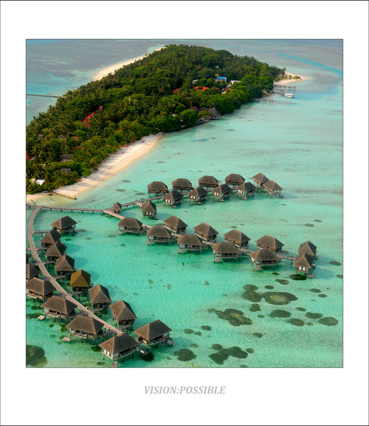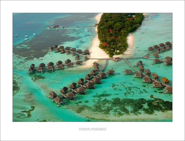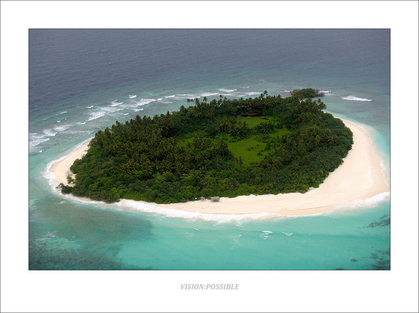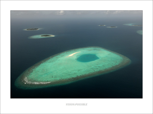 这是正在形成的初期岛屿,由珊瑚礁构成,从我了解到的一点点地理知识来说,这个是岛屿发育的一个阶段,正在形成沙洲,中间蓝色部分是泻湖,深色点是珊瑚礁。沙洲继续发育的话,会露出海平面,逐渐会有鸟类中继休息,鸟粪中会带来植物的种子,以及顺洋流漂来的椰子,到沙洲上生根发芽,这样会慢慢形成岛屿。从飞机上往下看,它们就像一个个的花环点缀在印度洋上,这也是马尔代夫的名字来源吧,马尔代夫----印度洋上的花环。漂亮的翡冷翠,令人惊叹的色彩。这一切,都靠那微小的珊瑚虫所造,它们尽管细小得只能通过显微镜来观察,但是它们的不懈努力,却能够造出这样伟大的风景,实在令我惊叹。另一方面,人类活动对自然的破坏,对海洋的污染,已经对这些小生命的生存环境造成了巨大的负面影响,我们是否能够反思自己,加强环保意识和手段呢?否则,这些美丽的岛屿,伟大的风景,在不久的将来,也许就消失了。