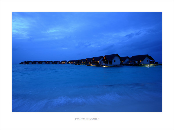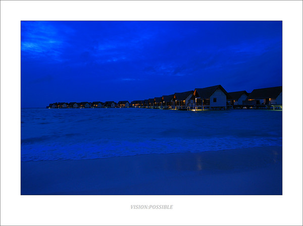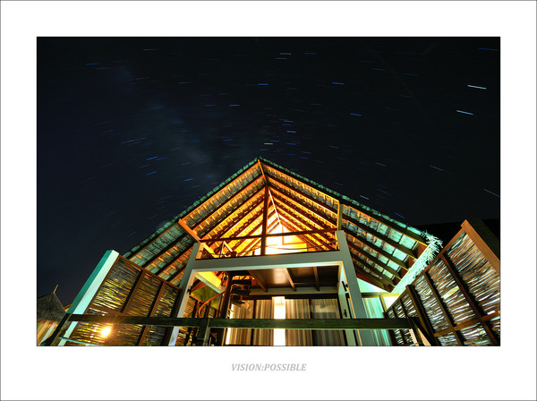 我们的水上屋夜景,长曝光。我先爬上二楼开了灯,曝光1分钟后再熄灯,以免这个区域过曝。