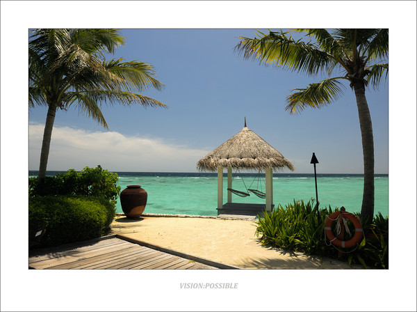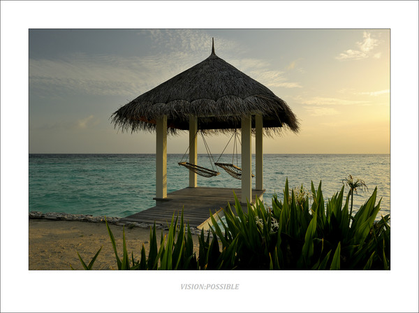 小亭子,里面有吊床,睡在吊床上吹吹海风很惬意。