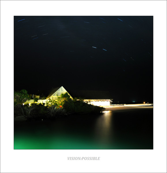 blu餐厅的夜景,拍了一张长曝光,云逐渐消散,可以拍到一点儿星轨。
