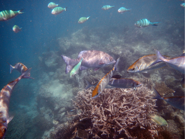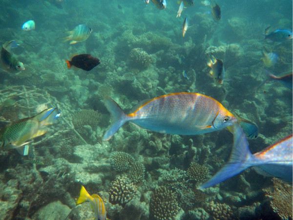 浮潜是完全免费的,而且免费提供脚蹼、救生衣、水肺,以及矿泉水。我使用了一台潜水照相机作为水下拍摄器材,nikon的AWS100。因为图像传感器比单反的小太多,所以画质不能与单反相提并论,但总是聊胜于无吧。