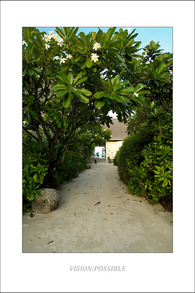 酒店大堂外的林荫道,尽头就是快艇码头,我们就是从那里登岛,通过这条林荫道进入大堂的。那里同时也是浮潜的乐园,非常多的鱼类和珊瑚。