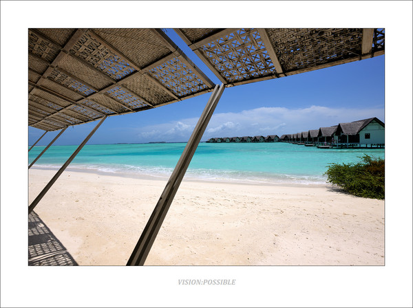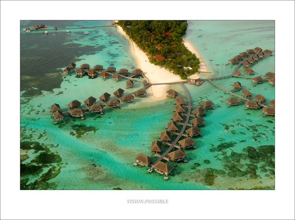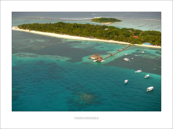 坐水上飞机离开兰达吉拉瓦鲁,广角拍摄了一张印度洋上的花环。