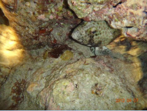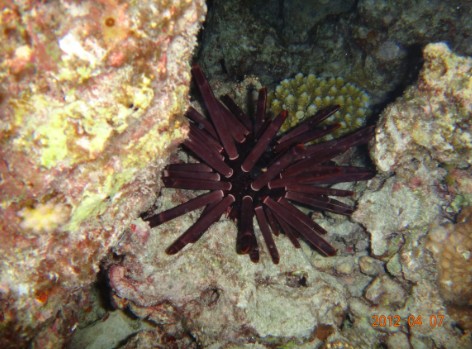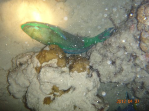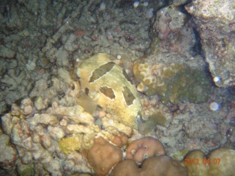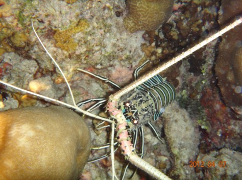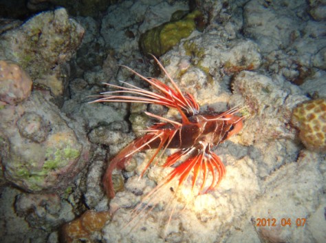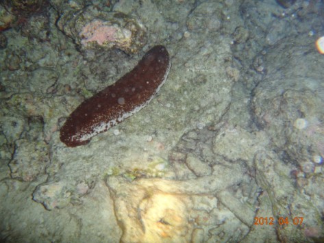 19:30,我、老婆、教练、还有suzi(她上班后也没在晚上潜过水,和我们一起体验一下)四个人就出发下水了。夜间浮潜果然没让我失望,在漆黑的海里打折探照灯浮潜超级刺激,灯一关那就是无底深渊,灯一开就是奇妙海底世界!而且很多生物都是夜晚才出来!看到好多大龙虾,看得我直流口水。。。。。(晚上一定要吃龙虾)。我那个防水相机也挺争气的,别看便宜,拍出来的效果还行,下面上图!