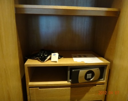间内的保险柜,上面的魔鬼鱼布偶写着“喜欢我就把我带回家吧”,别喜欢,因为要收费的
