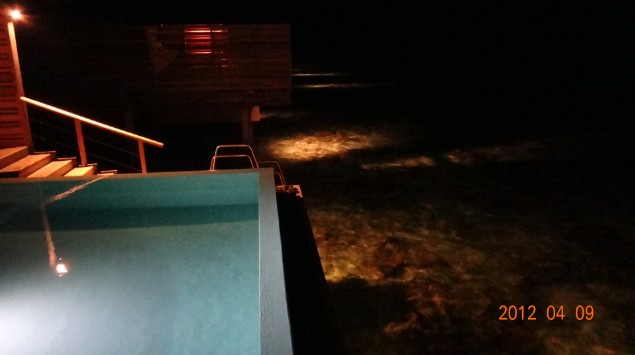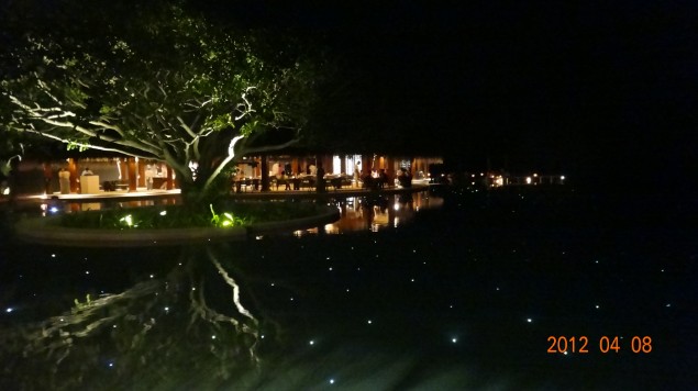 夜晚的无边泳池,池底的灯光就像星星一样。。。。。。对面是那坑爹的地中海自助餐厅!