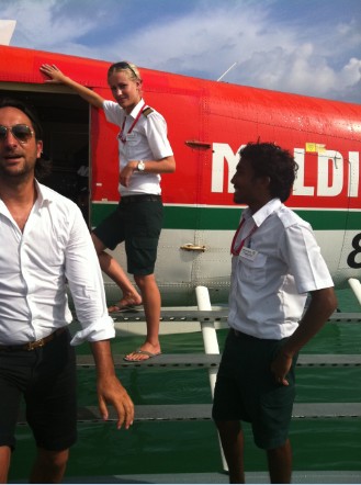下午15:00水飞准时起飞,到水飞机场后不能停留,直接被引导区坐巴士送去马累机场。我在水飞机场看到了SIX SENSE专用的水飞,飞机上还有很漂亮的图案,估计这个第六感应该不错,下次可以考虑试试~呵呵。