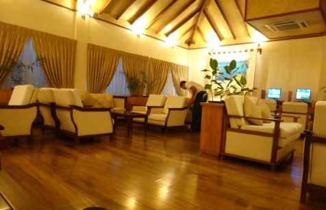 到了水飞候机室,发现我们的VIP候机室是水飞机场的共用VIP室,LILY岛的游客也在这候机。估计都喜天阙是个新酒店,还没来得及建独立的VIP室,关键是岛这么小,也没地方建了,只有挂靠咯。它的左边是四季酒店的独立VIP室,外面是W酒店的独立VIP室,最大的是共用露天候机室,其他酒店的都在那集中候机,酒店的条件通过这个就能体现。