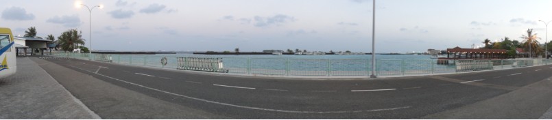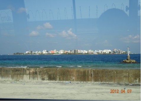从机场到水飞的候机处要做小巴过去,沿着海边走,可以远眺马累市。