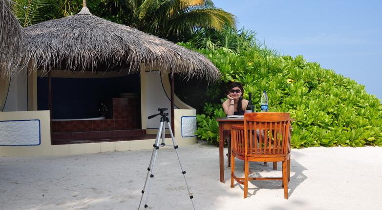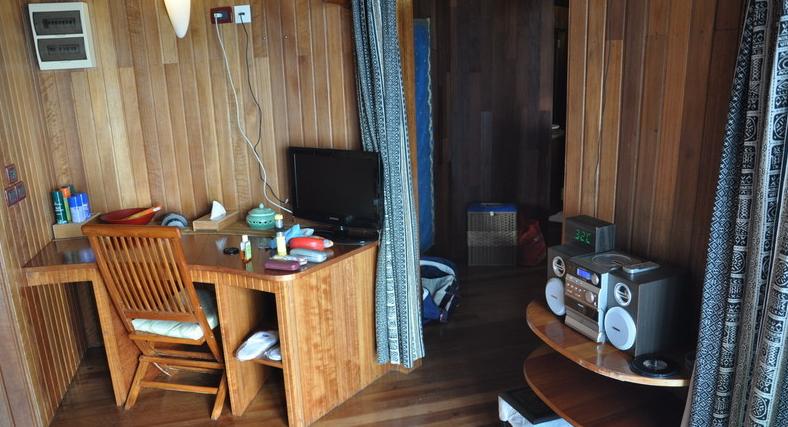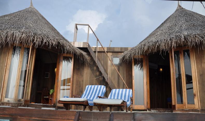 看看我们的家,BEACH VILLA 28号,最后一间沙滩别墅。紧邻餐厅,最靠近水屋的那一间。我的运气一向是好。