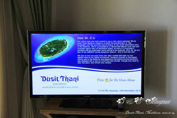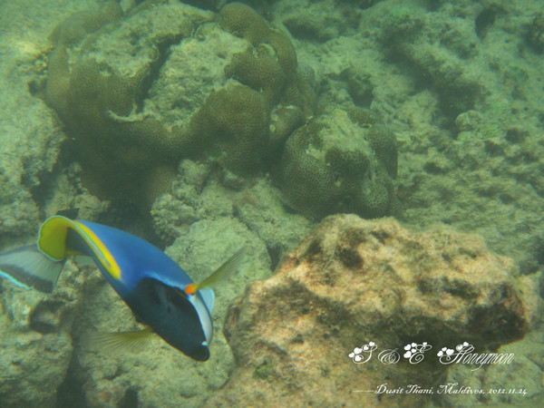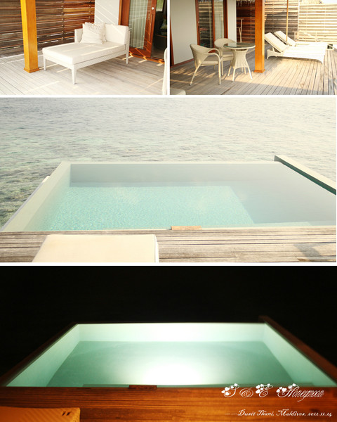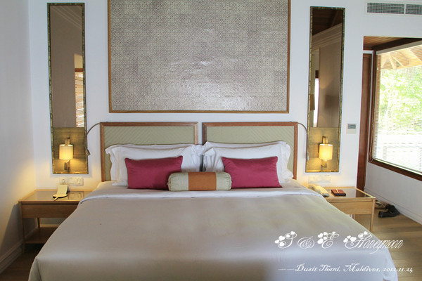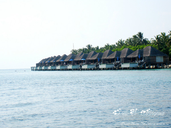 说起选岛,我就想改编一句名言。“如果你爱他,就让他选岛,因为那里是天堂;如果你恨他,就让他选岛,因为那里是地狱。”看着一幅幅马代的美图,一篇篇生动的游记,立马就觉得心旷神怡,如在天堂般生活。但到了自己决定岛的时候,简直是生不如死,恨不得随便选个明天就走,但又心疼银子。一次次的纠结之后,发现问代理是最快的。说出你的要求和预算,立马会有几个岛供你选择,而且都是搞活动的岛哦。再从网上找一下这几个岛的介绍,相中哪个就是哪个了。我的要求就是浮潜好,水屋要有无边泳池,最好是能HB或FB,老公又补充了一个要求就是水飞。这样一排除,根本就没几个岛了。我们选择的Dusit Thani是浮潜A级的,带有无边泳池,升级到HB,而且也是水飞上岛,所有要求都满足,舍他其谁。