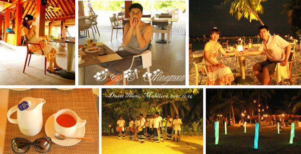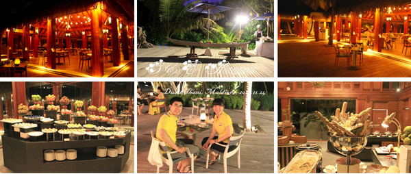 market:自助餐形式,全天共餐,相比较而言,我更喜欢这里的东西,赶脚更实惠、可选度高,因为这里所有的东西都是免费的,所有东西都是可以选的。我们每天的早餐和两天的晚餐是在这里吃的,早餐供应到岛上时间10点半,超过10点半,你还可以吃,但是不能去选东西了。不过都喜很人性化,服务员会在快到10点半的时候,一桌一桌的去问,我们的早餐就快要结束了,你还有其他需要的吗?晚餐从岛上时间7点开始,不论在哪里吃饭,服务员都会随时收走你吃完的东西,更换干净的盘子和刀叉,如果看见你杯子里的饮料没有了,就会问你还需要吗;如果看你吃完了,就会问你,对我们的食物还满意吗;总之,处处展现着六星岛屿的风范。