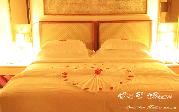 充满浪漫色彩的蜜月花床,真的不忍心破坏掉,那一夜,真的很甜蜜~~