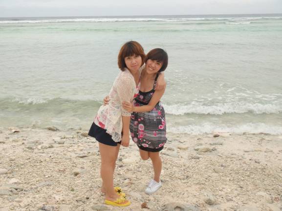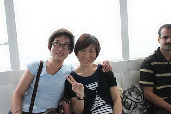 一下飞机,感觉好闷好热啊,一看我们就是村儿里来的外地人,还穿着羽绒服呢,呵呵,热情的导游来接我们,抢着帮我背包,拿衣服,我都不好意了,上快艇前,留个影吧。