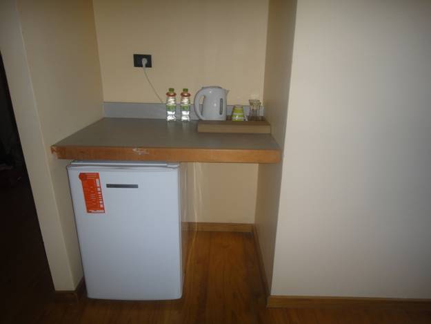 迷你冰箱 上面有免费的矿泉水 咖啡 红茶和烧水壶