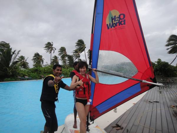 风帆冲浪 教练问我以前玩过嘛,我说没有, 所以他建议我先在泳池练习一下哦