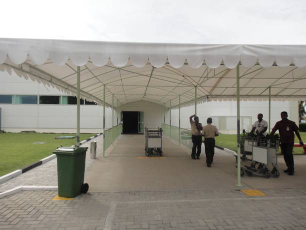 飞了1个半小时,终于到了GAN机场,下了飞机,取完行李,走出机场。。。