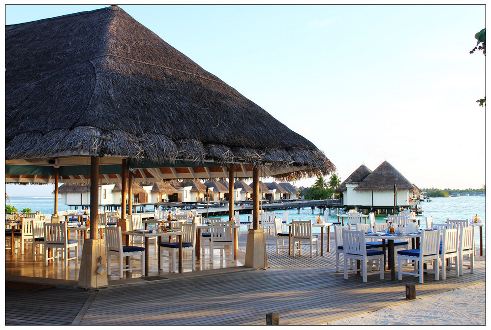 图文:依海而坐,一杯咖啡,一顿美餐,是如此的惬意!马尔代夫是需要浪费时间的地方,但这时间一点也不会寂寞!