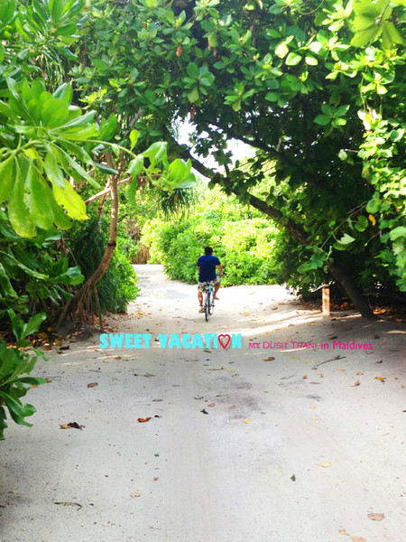 每个房间都配备两辆自行车,岛不算小,走走也有些路。