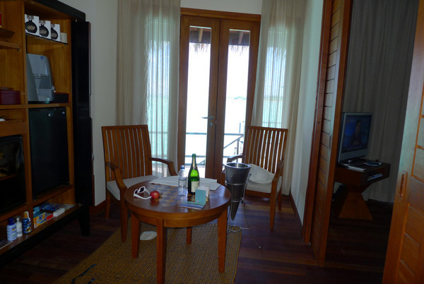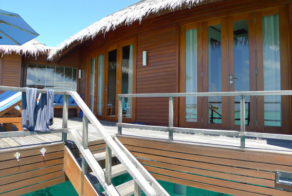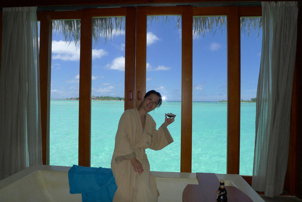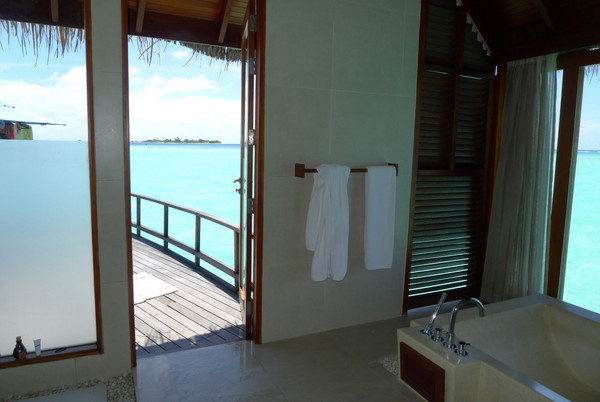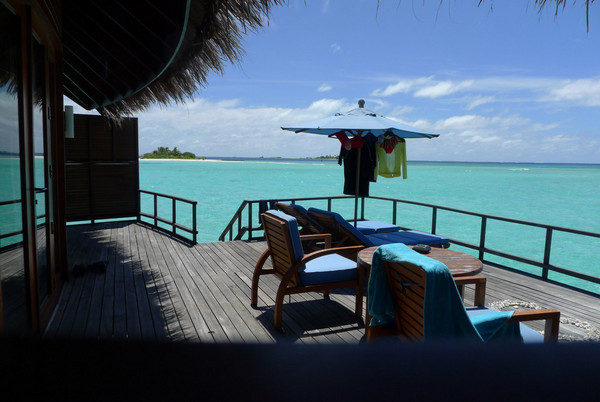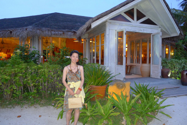再来介绍一下香岛吧。很美丽的岛,够大,不骑自行车是要走累的,每户都有自行车,刚开始出去的时候总是迷路,后来的2天就好了,香岛的海水不够清,远不如安岛的效果,但是用餐,服务,硬件设施是安岛不能比拟的。浮潜效果一般,但是景色真的好棒。以下是树屋一角,面对印度洋,但是放心啦,没有蚊子,也没有很吵闹的海水声音,一旦关了门,很安静的很