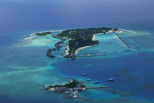 首先介绍一下安岛和香岛安岛有3个岛组成,富人岛(六星岛),薇利岛(四星岛)和嘀咕岛(五星岛),国人一般去薇利和嘀咕,此两岛有小船可以互通,客人可以任意往返此2岛,薇利岛水屋下景色很好,珊瑚多,但是住宿环境不如嘀咕的水屋,薇利和嘀咕的客人可以去划船无人小岛游玩,但是不可以去富人岛,富人岛貌似都是欧美人去的,就是比较安静,景色的话,好象也就那样了,以下是从香岛回来时,内陆飞上拍到的小岛,很兴奋,那么多小岛,竟然让我找到了曾经住过的小岛呢。可惜机翼挡了一下,长条的就是嘀咕岛,我就住水屋最右面的一间,景色很不错喔,29号,如果有朋友要去可以要求定这个号,最左面的就是薇利岛中间的是富人岛,有红色房子的是员工岛,最右面靠近海沟的是无人岛,可以划船去无人岛看海沟,只要你够勇气,我是游到一半马上回来,就怕一去不复返了,哈哈