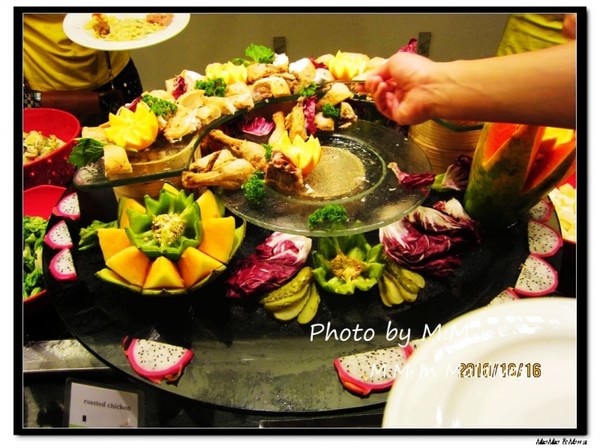 这个是水果区域,这里有很多热带的水果,有厨师现场切新鲜的水果,厨师看到你在等新鲜水果,会先根你打招呼,然后麻利的切水果放在你的盘子里