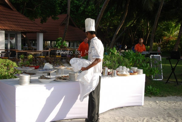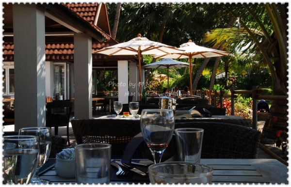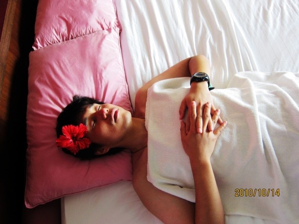 11点左右,我们去前台办理完Checkout的手续后(不用说什么,你提着大包小包的G.O就知道你要退房了,把包往柜台上一放,G.O就知道要寄存行李,真是有眼力价呀),就在沙滩边的沙滩椅上睡觉了,中午到点去吃饭,下午在沙滩毛巾柜台领了两条毛巾继续在沙滩椅上睡觉,呵呵...