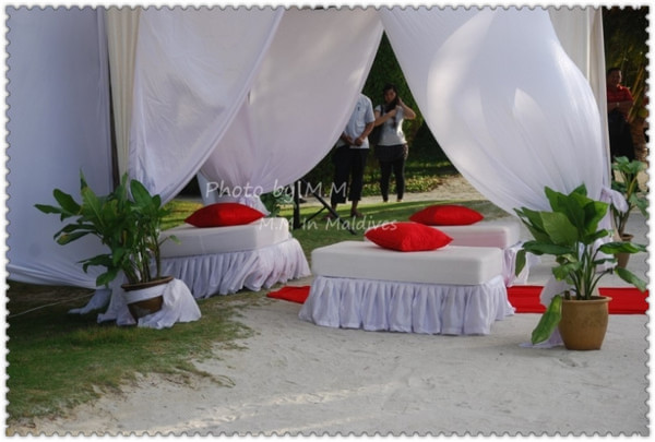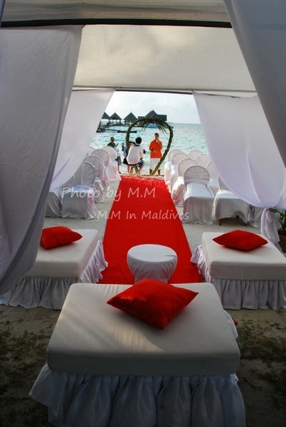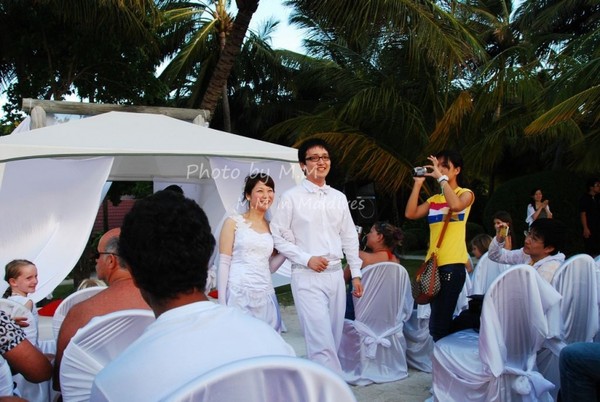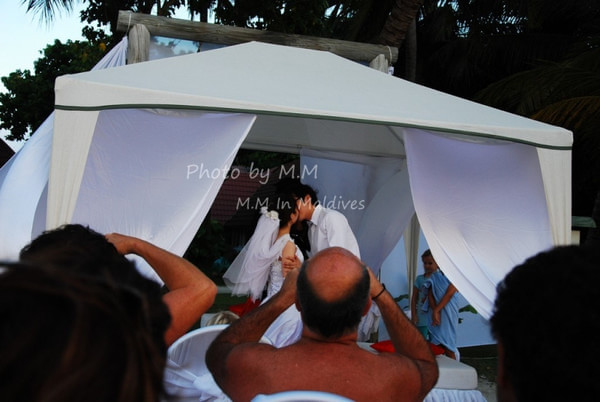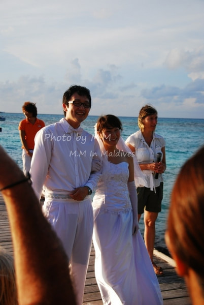 就在我们即将离岛的那天下午,我们碰到了浪漫的沙滩婚礼,举行婚礼的是一对日本夫妇,是ClubMed精心为他们准备的