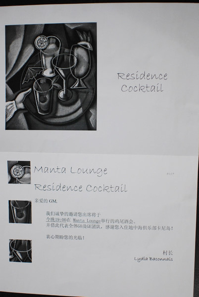 日落酒吧就在游泳池旁边,开放时间:9:00-12:00,14:00-19:00,饮料、酒水免费提供,吧台上共有五本menu,分别是中文,日文,韩语,英语,法语菜单,不会说英语的人可以拿着菜单指给G.O看就可以了
