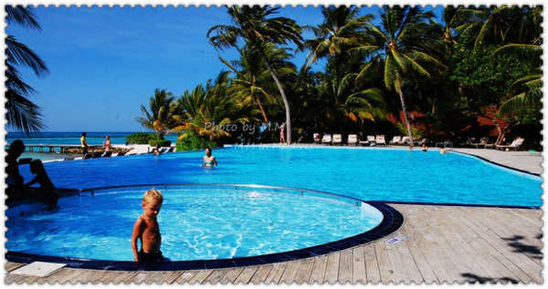 酒店免费提供救生衣,就不用千辛万苦背到马尔代夫去了
