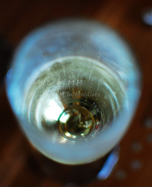 今天,是我们在Kani的最后一晚,心中不免些许惆怅,看到第一天上岛时Kani送的香槟还在那里摆着,于是,开香槟吧,不仅是为了欢送我们即将离岛,更多的期盼我们再次的回归。