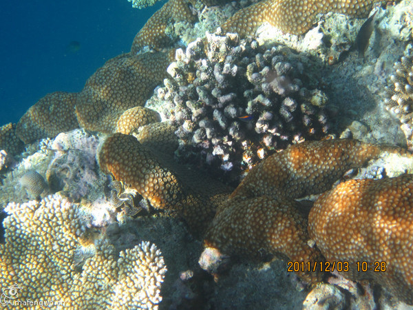 小黑要指出海龟所在位置,也是一头就窜下去了,海龟不太大,颜色接受珊瑚的颜色了,大家看看它在哪