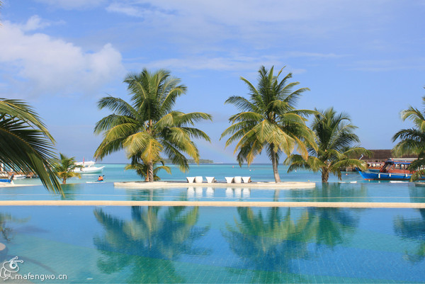 先来说说康杜玛岛的特点:硬件和服务很好,岛上每个角落都是一处风景,但海水质量不及班度士岛,其中一片海域长的都是水草,珊瑚就不用说了,所以如果喜欢浮潜的游人们,如果不是对硬件太过于要求的话,推荐班度士岛。如果对硬件有要求的朋友们,康杜玛岛性价比不错的哟,而且服务很好呢。