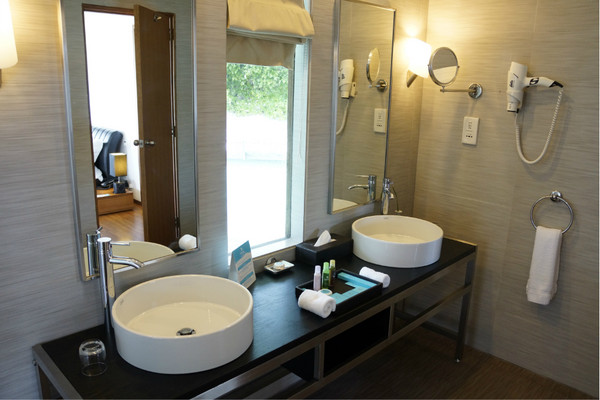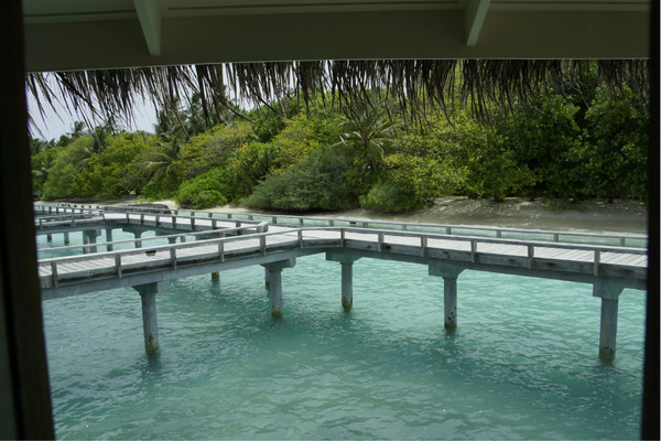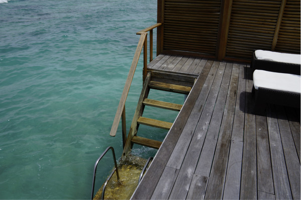 2、普通水屋是两家公用一个阳台,包括下水浮潜的地方也是公用,而按摩水屋有自己独立的大阳台,加上宽敞明亮的大落地窗,这种感觉还是相当好的。