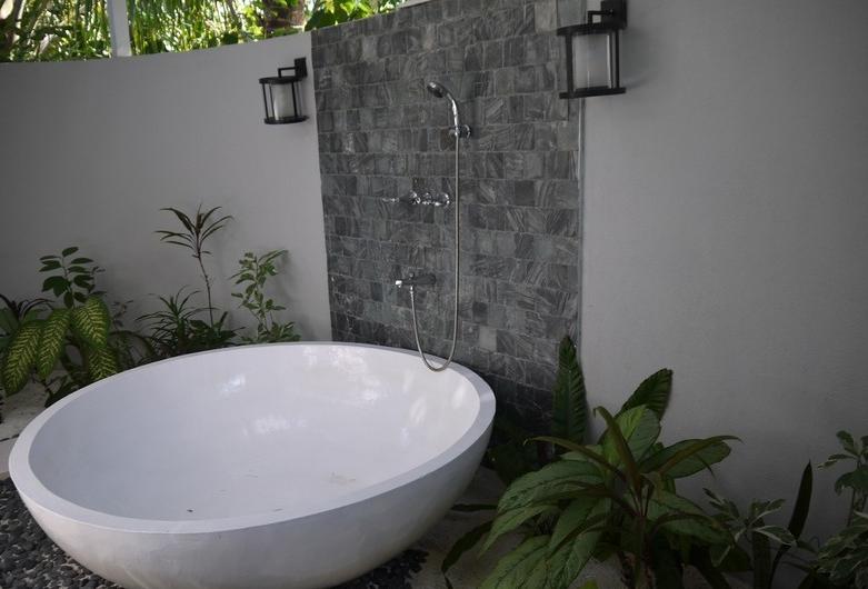 有一个露天浴缸,但是从没用过……为啥呢?第一,俺害怕各种虫子会突然造访;第二,浴缸里面都是土……;第三,每天下午工人都会给植物打药!间接也帮浴缸打了打药…………