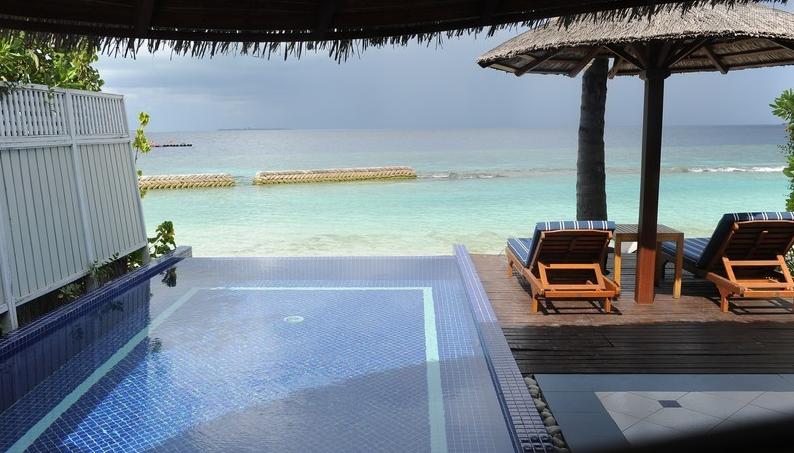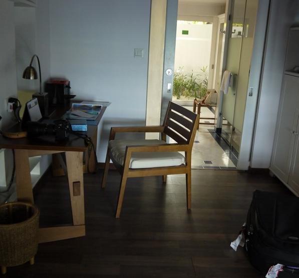 话说,这次我们的RP真是好到不得了~本来订的是两晚沙屋+两晚夕阳水屋,check in的时候被告知我们的沙屋被升级为带泳池沙屋的鸟哎呦那个高兴啊~~~!!!
