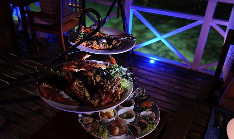 白天和夜晚的Aqua Bar和海鲜餐厅