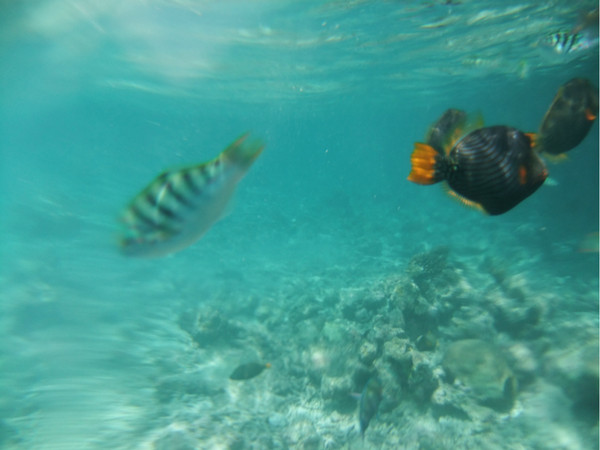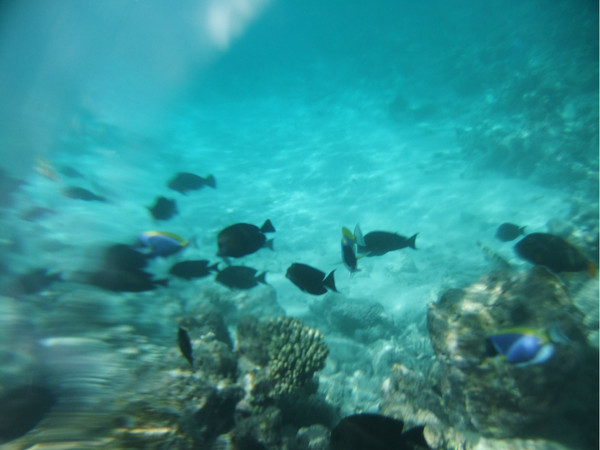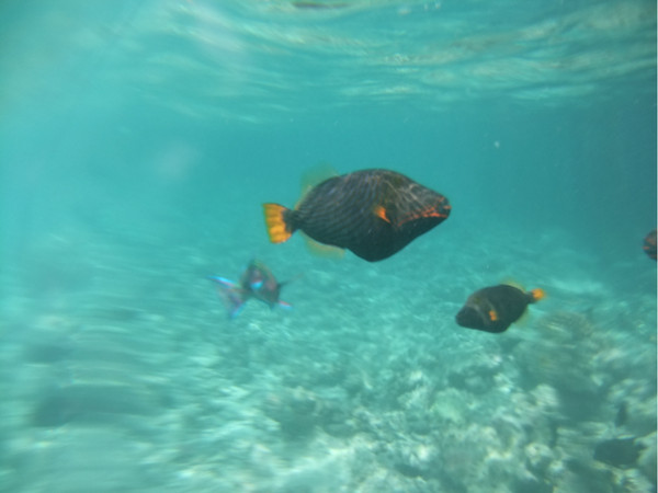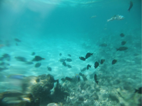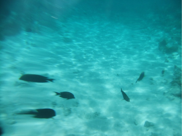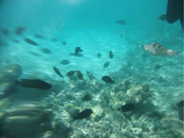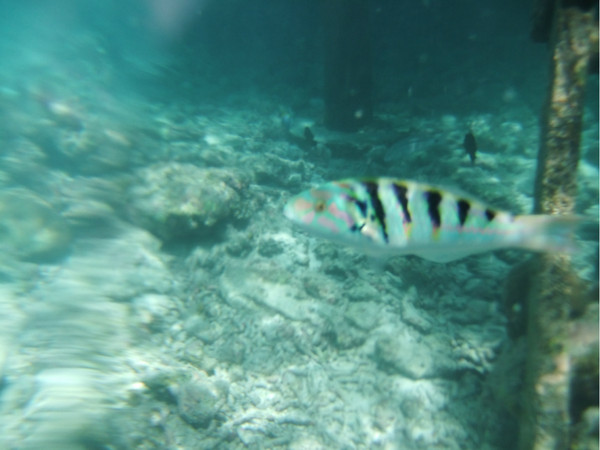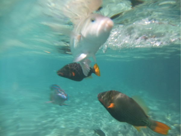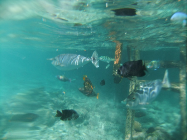 水屋下的鱼真是很多,一块面包即可引来大群的鱼,当时没有水下相机,找的不清楚