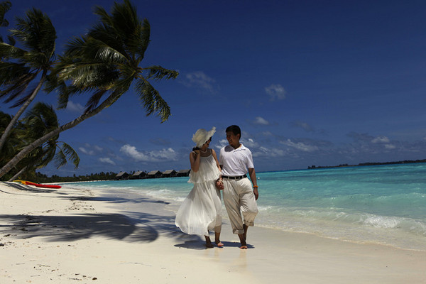 说到岛上的优质服务,我们同去的朋友夫妇也很有感受。比如无论你走到哪里,岛上的小黑如果看到你们夫妻在相互摄影留念,都会热情地问:MAY I HELP YOU?他们是问需不需要他帮咱照合影。起先我们还怀疑人家的拍照技术,害怕把人照的太小,其实人家照的每张都不错。表现小黑们热情的例子实在很多。这时我听朋友妻说:还有呢,昨天我们回到房间时,把鞋子随便甩在了门外,结果再出门时,发现鞋子整整齐齐摆在门口。他们真是太到位了。这时只听朋友夫幽幽地说:“这个功劳可是我的哦,好不容易表现一下,你却......”。哈哈哈.....不过大笑之余,仍然佩服、还是佩服人家的服务——您瞧,把自家人干的好事都“安”到他们头上,可见小黑们平时服务的无微不至。