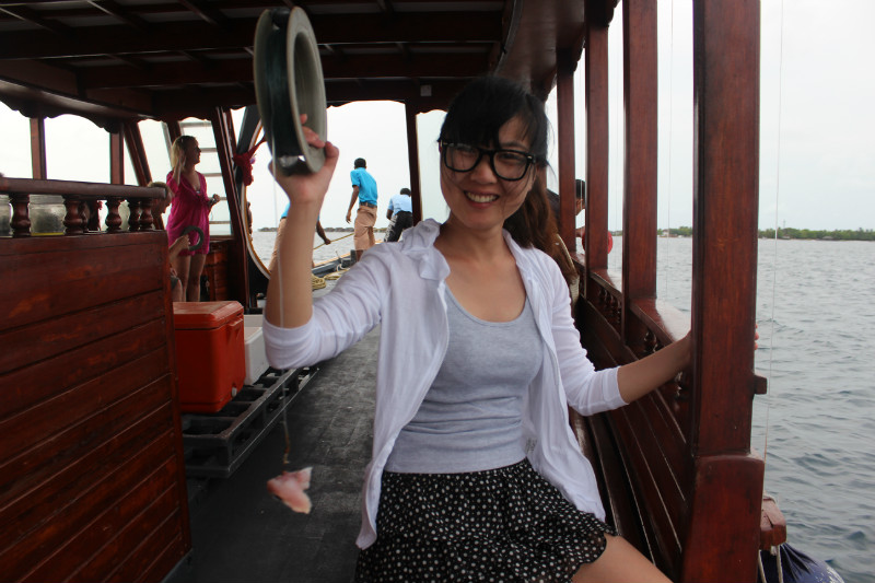 3、无人岛探险,2对中国人,2对日本人。本来不会游泳的我只打算在无人岛上随便转转,结果必须游过去才能上岛,我便打算呆在船上,结果还是被卢先生调戏小黑给扶过去了,日本(曾被卢先生认为同胞的,还和人家讲普通话,最后大家都笑翻了)小两口问:“Are you ok?”“OK”"You are first time?"“Yes”"Where is your husband?"“There”