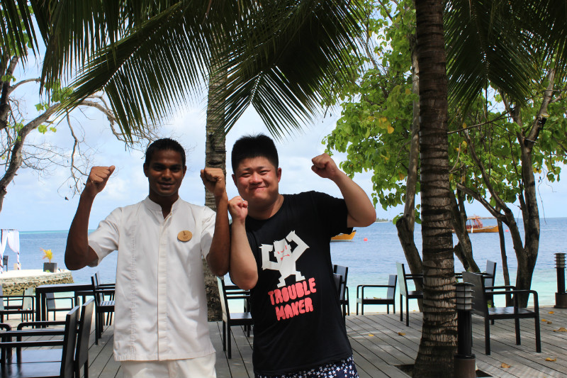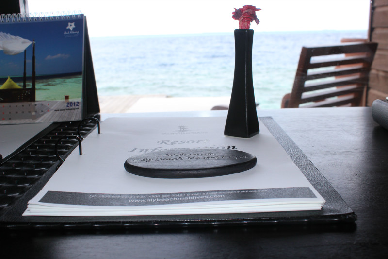 我们两稀里糊涂的进了lily maa,非常友好热情的小黑小姐接待我们,问我们是不是才睡醒··“YES!!O(∩_∩)O~you are clever ” 非常亲切愉快的第一次就餐开始了···我们吃到10点左右,真是好吃啊,品种真多。(顺便提下下时差,马累比中国迟三个小时,马累10点,中国已经半夜1点了)