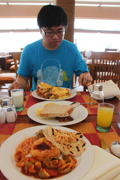 我与老公来岛上的第一个决定就是在这里吃一顿烛光晚餐,但是选的是海鲜BBQ,100美金一对夫妇!但是要注意的是,这个海鲜BBQ的种类很少,我们有种上当的感觉,只有烤大虾(味道不错!个儿大!但注意不是龙虾,是普通的海虾)、咖喱螃蟹(小螃蟹)、烤鱿鱼。是海鲜的就这3种,太少了,感觉有点儿上当,但是情调还可以,有人专门给你唱歌,歌声优美,先上图再说: