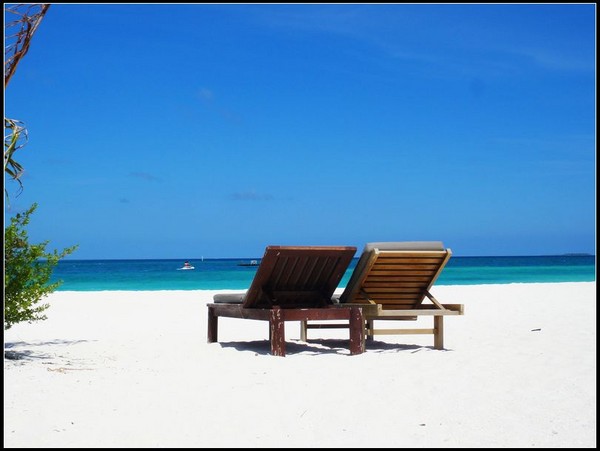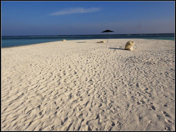 蜜月晚餐的地点,浪漫的两个人,就在这沙滩上共进晚餐。 然后,我想,黑漆麻黑一片的,就靠几支小蜡烛,估计吃啥都不知道。