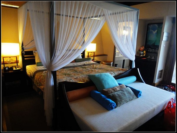 床头的沙发床,是给小孩子睡得。这样就不用和我们挤在一起了。