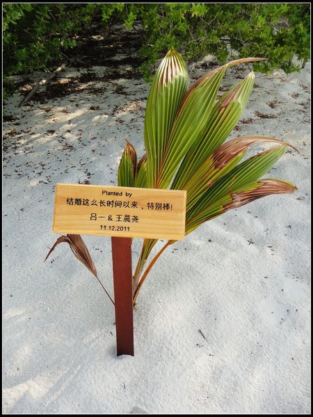 沙滩上,有人种下了爱情树,看到中文,无比亲切的说。