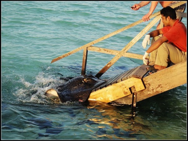 5点半,去看喂魔鬼鱼,很有意思,小子看了半天,不肯走。