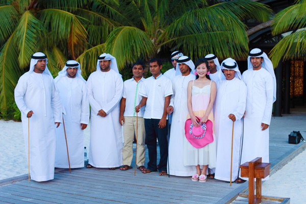 途中遇到了一群阿拉伯人,打扮很显眼,度假村的员工也出来和他们合影,非常有意思