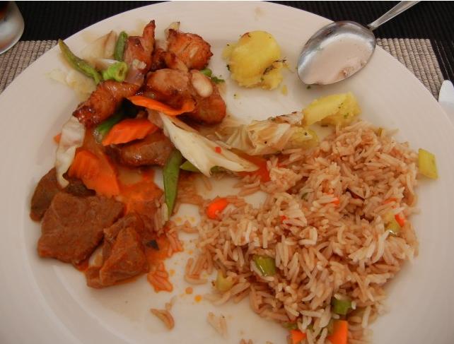 最后一顿饭,留照纪念。在这儿这几天基本顿顿中餐晚餐都吃这个米饭,再浇上点其他菜的汁还不错,其他实在是没有好吃的主食了。。。